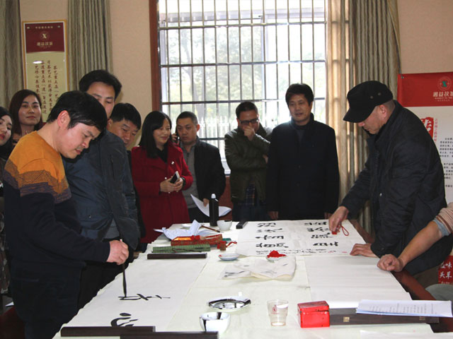 2015年12月8日下午,益陽市總工會黨組書記、副主席郭谷軒,市總工會副主席、市書法家協(xié)會副主席唐新華,市書法家協(xié)會常務(wù)副主席、秘書長石印文組織市書法名家蒞臨益陽茶廠有限公司舉行以“翰墨茶香”為主題的筆會活動。