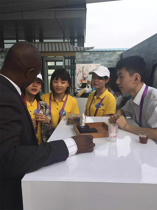 與會非洲友人品飲湘益茯茶并對湘益茯茶益生源頗感興趣